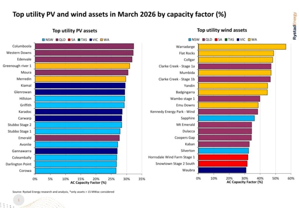 The geographic concentration of top performers stands in stark contrast to the distributed performance seen across multiple states in February, when utility-scale solar assets demonstrated strong results across New South Wales, Victoria and Western Australia.