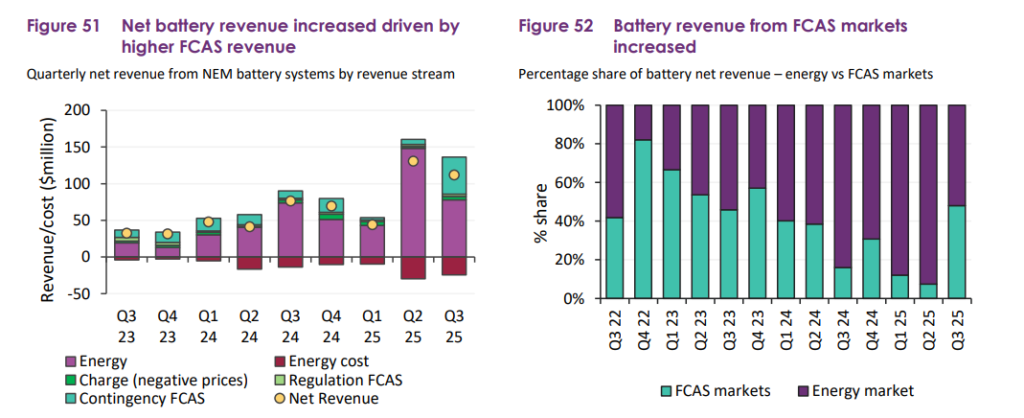 Battery energy storage systems (BESS) dominated the Frequency Control Ancillary Services (FCAS) market share in certain regions, accounting for 77% of the contingency and regulation market volume in Q3 2025.
