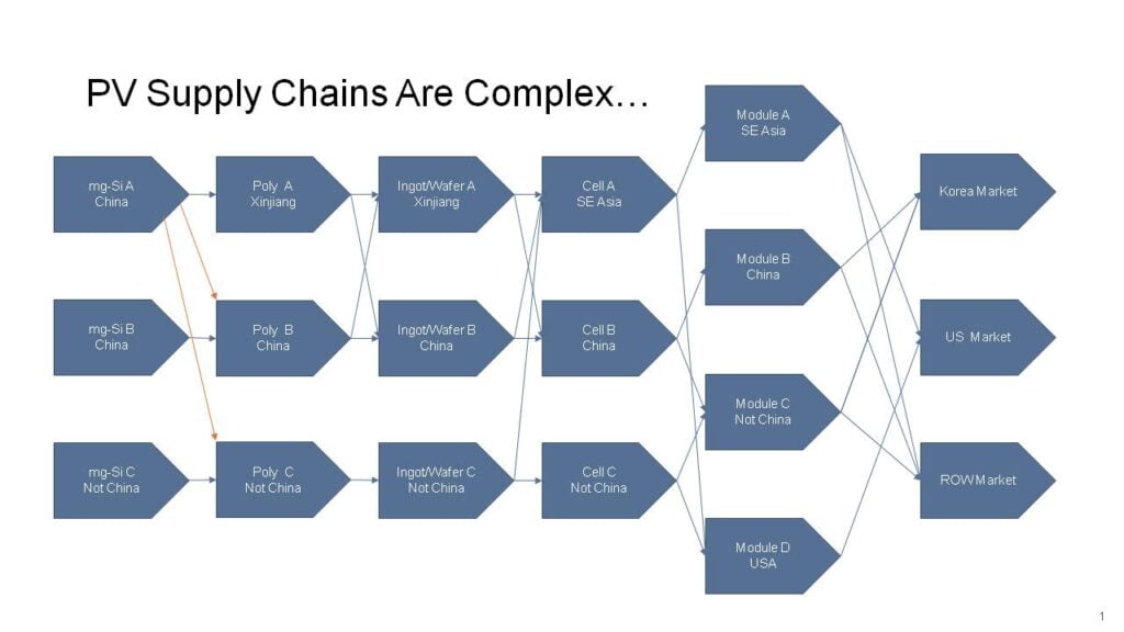 Counterparty risk does not imply wrongdoing. In many cases, the issue is opacity. Treasury, investors and insurers want predictable projects, and predictable projects depend on verifiable suppliers. Buyers benefit from a clearer view into how modules are made, how upstream materials move through the supply chain, the ownership structure of each facility in the supply chain and how compliance claims can withstand audit.