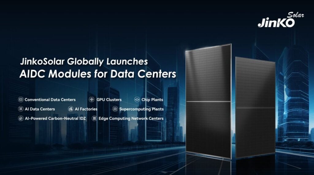 JinkoSolar has announced the global launch of its new AIDC module for data centres. Built on the proven Tiger Neo 3.0 TOPCon platform technology, the product is specifically designed for conventional and AI data centres, GPU clusters, supercomputing plants, edge computing network centers, chip plants, AI factories and AI-powered carbon-neutral IDZ. The AIDC module addresses the specifically high requirements of data centres, including high load capacity, high asset security, prolonged non-stop operation, extreme weather resistance, super stability and reliability, low O&M requirements and large-scale deployment, providing the best possible clean energy solution for “computing-power synergy” in the AI world.