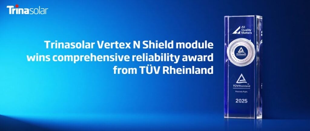 Trinasolar has announced that its Vertex N Shield module has received the ‘PV module Comprehensive Reliability’ award at the 11th TÜV Rheinland ‘All Quality Matters’ Solar & ESS Congress.