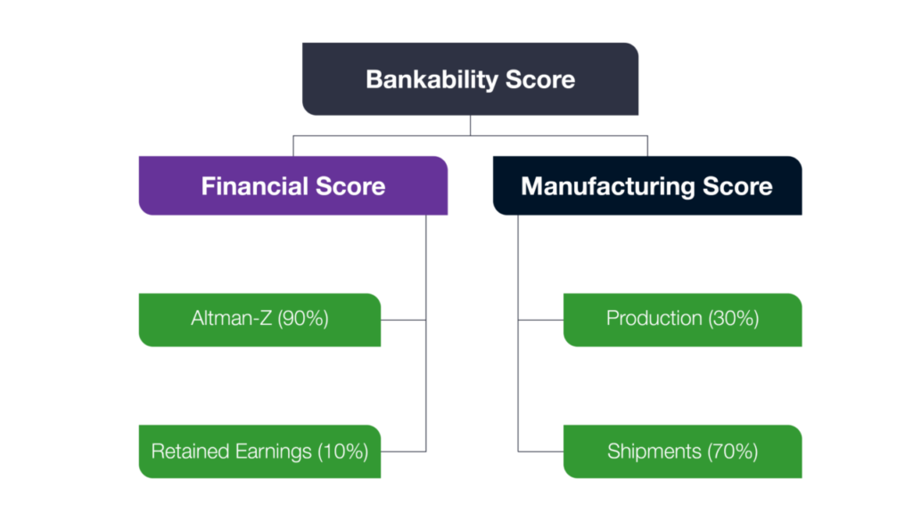 The final bankability score for each company is determined by combining financial and manufacturing scores, calculated through a quarterly benchmarking process.