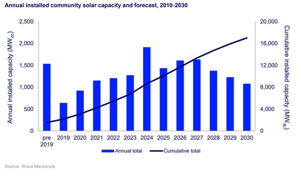 “Overall, we expect national installed community solar capacity will contract by an average of 5% annually through 2030 in existing state-level programmes,” said Caitlin Connelly, senior analyst and lead author of the report.